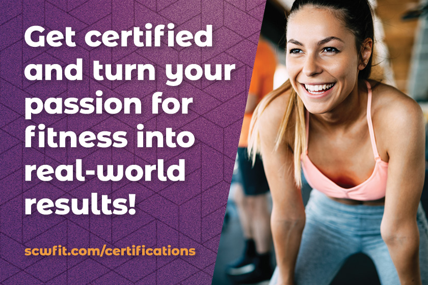 Advance your fitness career with SCW’s nationally recognized certifications available online, live, or live-stream, and enjoy flexible learning that includes all study materials, videos, an automated exam, and generous completion timelines.
