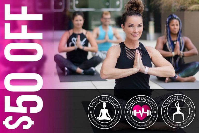 SOULfusion™ is a creative blend of yoga-inspired flows, short cardio bursts, balance sequences, and bodyweight and weighted strength training exercises all set to crazy fun music.